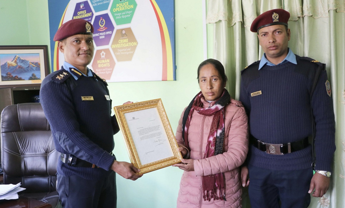 उक्त समवेदना पत्र सोमबार जिल्ला प्रहरी कार्यालय कास्कीका एसपी मोहनकुमार थापाले एक कार्यक्रम आयोजना गरी असई ढुंगानाकी श्रीमती राधालाई हस्तान्तरण गरिएको थियो ।