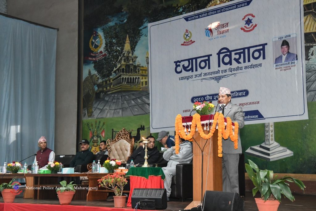 नेपाल सरकार गृह मन्त्रालयको समन्वय तथा राष्ट्रिय प्रहरी प्रशिक्षण प्रतिष्ठान महाराजगञ्ज र जीवन विज्ञान संस्थाको संयुक्त आयोजनामा ध्यान विज्ञान ध्यानद्वारा उर्जा जागरणको एक दिवसीय कार्यशालाको सोही प्रतिष्ठानमा शनिबार उद्घाटन गर्दै उपप्रधानमन्त्री एवम् गृहमन्त्री श्रेष्ठले उक्त कुरा बताएका हुन् ।