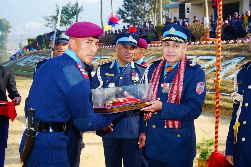 नेपाल प्रहरी केन्द्रीय विशेष कार्यदल कपनमा आयोजित दीक्षान्त समारोहमा नेपाल प्रहरी प्रधान कार्यालय कार्य विभागका प्रहरी नायव महानिरीक्षक (डिआईजी) विकास राज खनालले विभिन्न विधामा उत्कृष्ट प्रशिक्षार्थीहरूलाई पुरस्कार प्रदान गरे ।