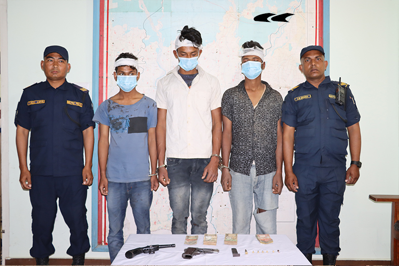 उनीहरूको साथबाट एक थान कटुवा पेस्तोल, त्यसमा प्रयोग हुने आठ एमएमको गोली एक थान, सात दशमलव ६२ एमएमको अर्धस्वचालित पेस्तोल एक थान, त्यसैको म्याग्जिन एक थान र पाँच राउण्ड गोली बरामद भएको छ ।