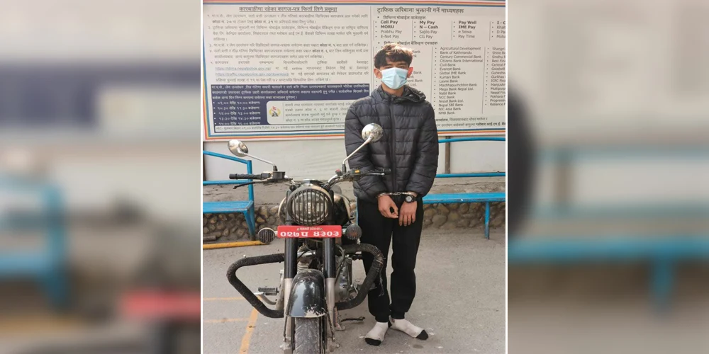 काठमाडौंकै चाबहिल बस्ने १८ वर्षीय सक्षम गुरुङलाई नियन्त्रणमा लिएको काठमाडौँ उपत्यका ट्राफिक प्रहरी कार्यालयले जानकारी दिएको छ ।
