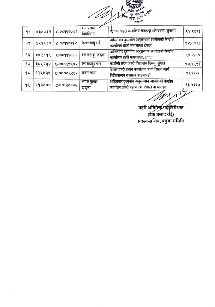 बढुवा हुनेहरूमा २०७० सालका प्रहरी निरीक्षकमा भर्ना भएका हुन् । सो समूहमा ९८ जना प्रतिस्पर्धामा थिए ।