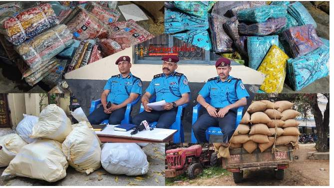 पर्साका विभिन्न नाकाहरुमा कडाई गरि प्रहरीले एक महिनाको अवधिमा चोरी पैठारी गरि ल्याएको अवैध सामग्री ५ करोड ८७ लाख ३६ हजार ७९९ रुपैया बराबरको बरामद गरि वीरगंज भन्सार कार्यालय र राजस्व अनुसन्धान कार्यालय पथलैया बारामा दाखिला गरेको पर्सा प्रहरी प्रमुख एवम प्रहरी उपरीक्षक कुमोध ढुंगेलले बताए ।