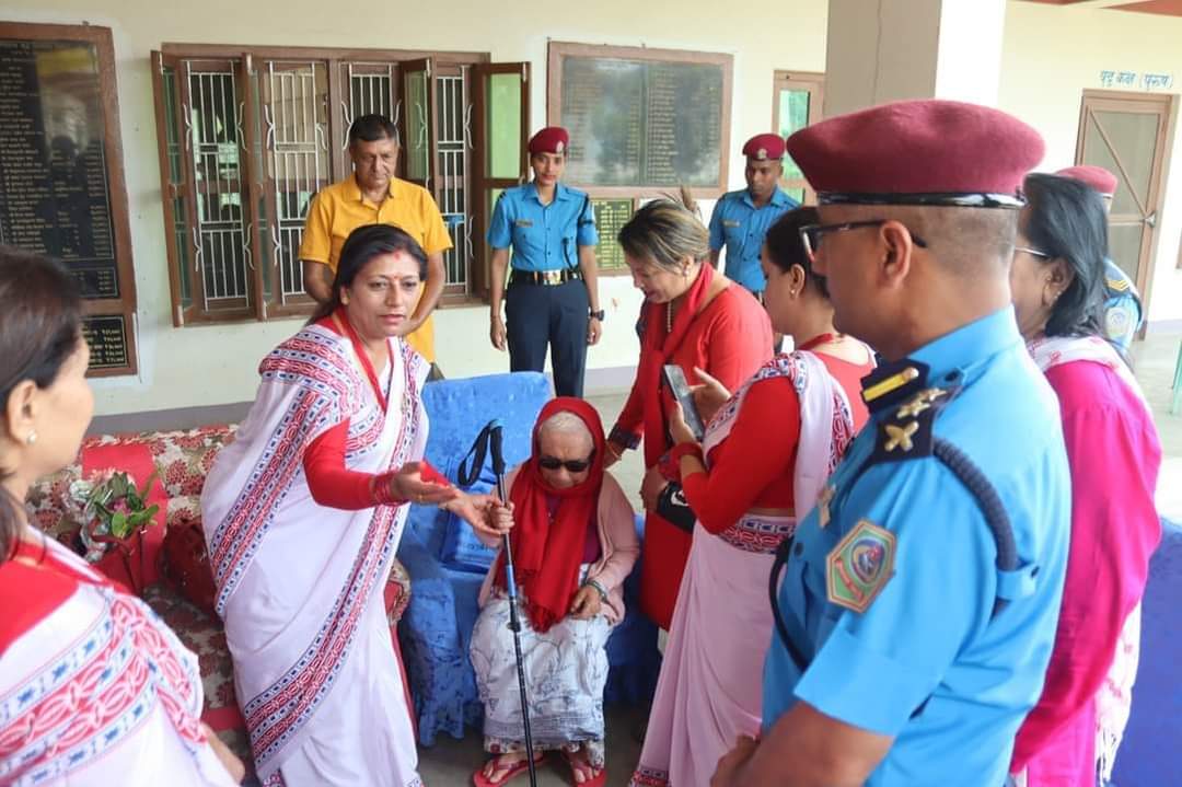 काठमाडौं । नेपाल प्रहरी श्रीमती संघकी अध्यक्ष लक्ष्मी कुँवरले चितवन रत्ननगर न.पा. वडा नं.१३ स्थितमा रहेको असाहय बृद्ध कल्याण समाजमा रहेका बृद्ध बृद्धाहरुलाई लत्ता कपडा तथा खाद्यान्न सामाग्री बितरण गरेकी छन् ।