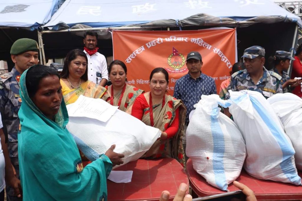 महोत्तरी । महोत्तरी मटिहानी न.पा. 6 जरलहवा टोल गाँउ बस्तिमा भएको आगलागीबाट १०३ घरधुरी पुर्ण रुपमा क्षति भएकामा सशस्त्र प्रहरी परिवार महिला संघकी अध्यक्ष श्रीमती अनिता लामिछाने अर्यालबाट आगलागी पिडितहरुलाई राहत सामाग्री वितरण तथा सामुहिक खानाको कार्यक्रम गरिएको छ ।