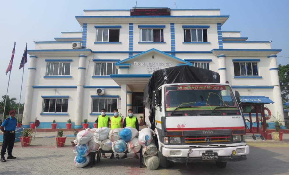 सुनसरी । सुनसरी प्रहरीले ४ सय ४० किलो गाँजासहित तीन जनालाई पक्राउ गरेको छ । प्रहरीले देवानगञ्ज गाउँपालिका–५ स्थित मेहेता टोलबाट १३ वटा बोरामा प्याक गरिएको ४ सय ४० किलो गाँजासहित गाजा लोड गरिएको को १ ख ७१२३ नम्बरको मिनी ट्रकसहित तीन जनालाई नियन्त्रणमा लिएको हो ।