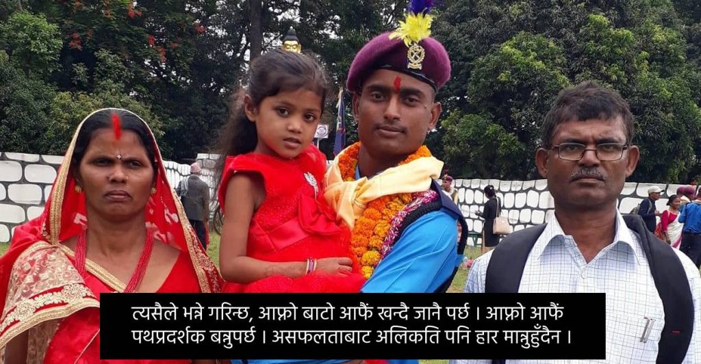 रहर पनि एक/दुई पटक होइन । दर्जनौं पटकसम्म असफलता पाइरहँदा समेत प्रयास गर्न नछोडेका दासले अन्ततः नेपाल प्रहरीको निरीक्षक पदमा नाम निकाल्न सफल भएका छन् ।