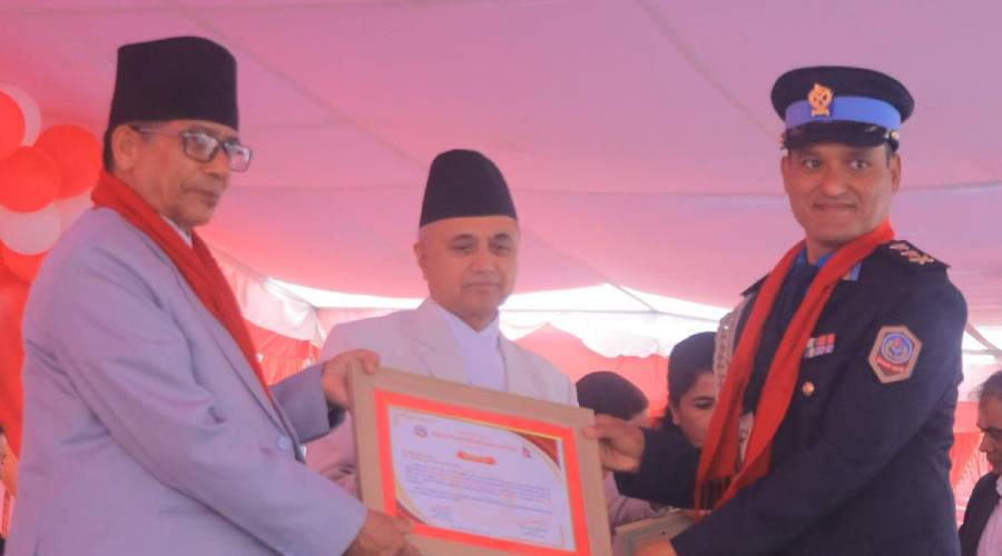 काठमाडौं । जिल्ला प्रहरी कार्यालय कास्कीका प्रमुख प्रहरी उपरीक्षक (एसपी) मोहन थापा पुरस्कृत भएका छन् । गण्डकी प्रदेश सरकारले गणतन्त्र दिवस २०८१ को अवसरमा थापालाई उत्कृष्ट शान्ति सुरक्षा प्रोत्साहनबाट पुरस्कृत गरेको हो ।