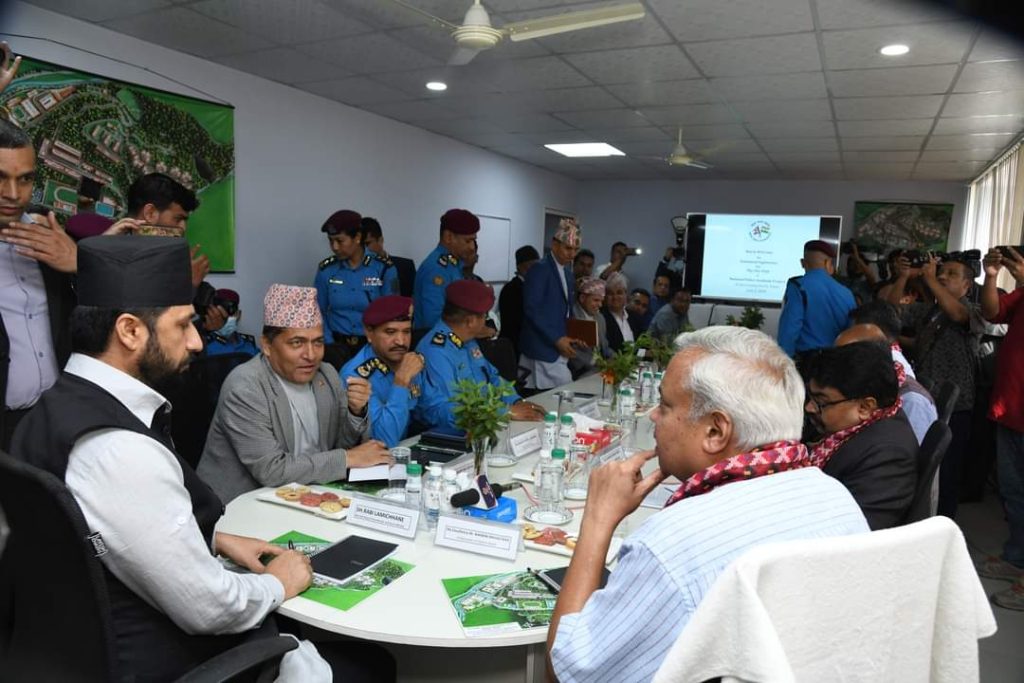 सो अवसरमा गृहमन्त्री रवि लामिछाने लगायत सहभागी उच्च पदाधिकारीहरू एवम् निर्माणमा संलग्न सरोकारवालाहरू बिच निर्माणमा देखा परेका समस्याहरू समाधान तथा चुनौति लगायतका विषयमा छलफल समेत भएको थियो ।