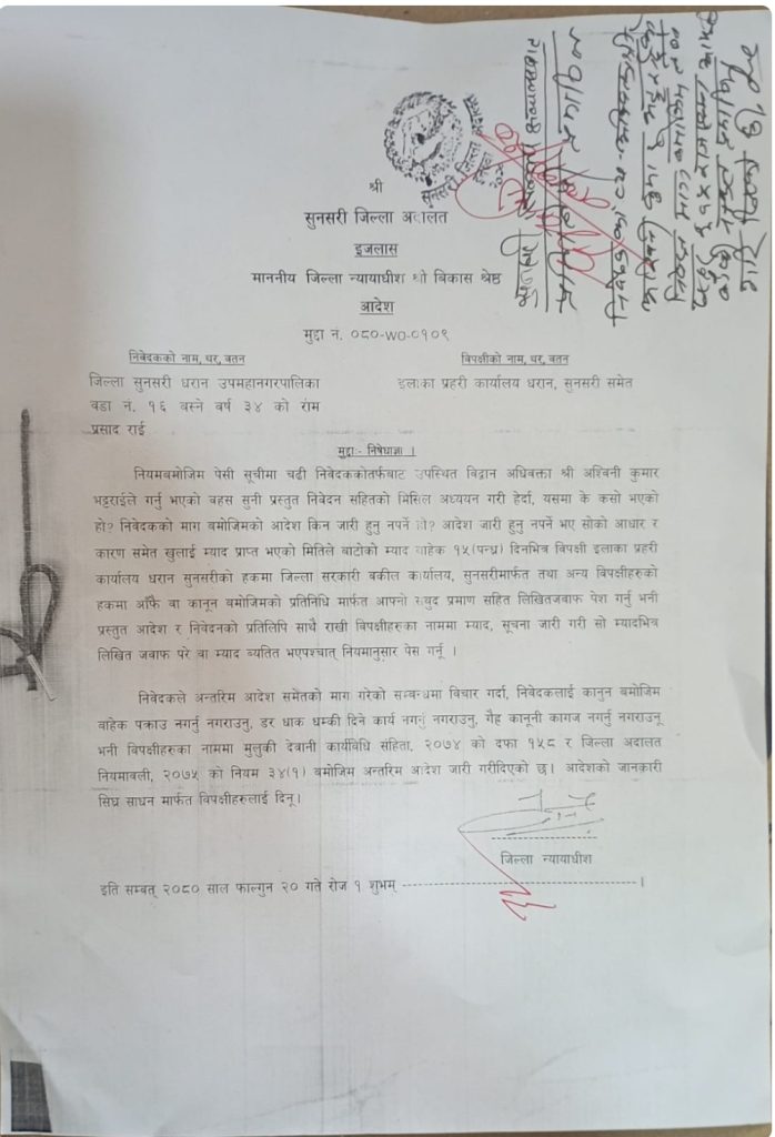 अदालतले पक्राउ पुर्जी समेत जारी नगरी हाजिरी जमानीमा रहेका सुनसरी धरान उपमहानगरपालिका- १६ जनपथ टोलका ३४ बर्षका रामप्रसाद राईलाई १६ जेठमा पक्राउ गरी मानसिक यातना दिँदै १७ जेठमा छाडेको विषय खुलासा भएको हो ।