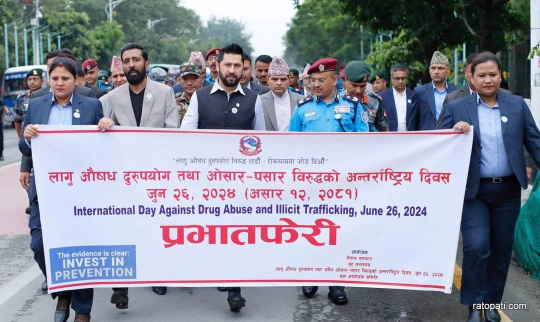 काठमाडौँ । लागुऔषध दुरुपयोग तथा ओसारपसार विरुद्धको अन्तर्राष्ट्रिय दिवस नेपालमा पनि विविध कार्यक्रम गरी मनाइँदै छ ।