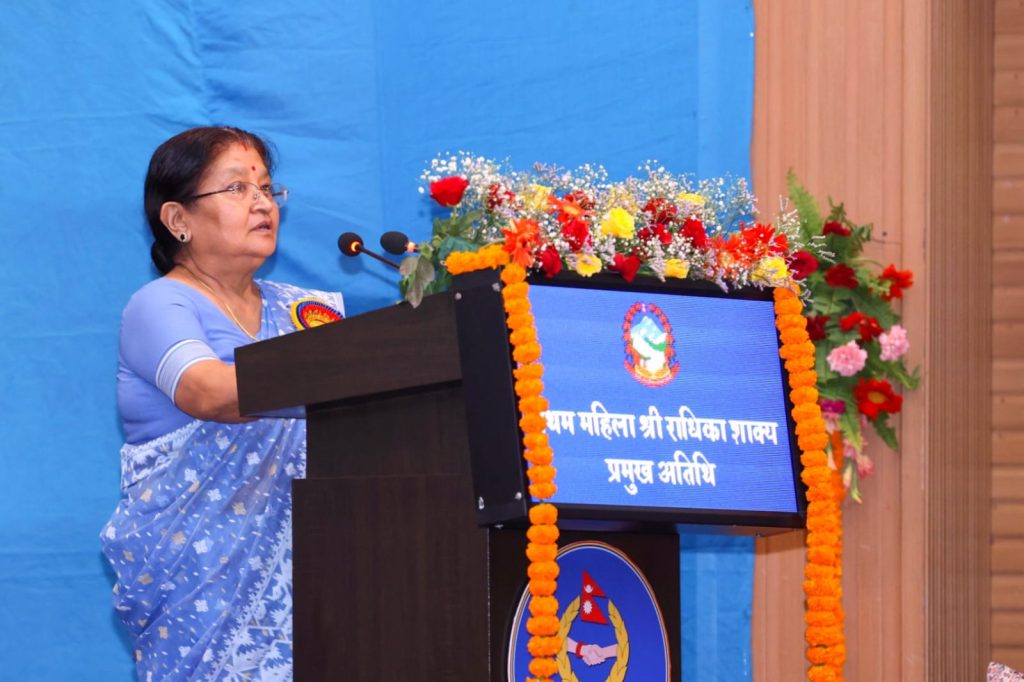 काठमाडौँ । प्रधानमन्त्री केपी शर्मा ओलीका धर्मपत्नी राधिका शाक्यले नेपाल प्रहरी श्रीमती सङ्घको मानवीय कार्य प्रशंसनीय भएको बताएकी छन् ।