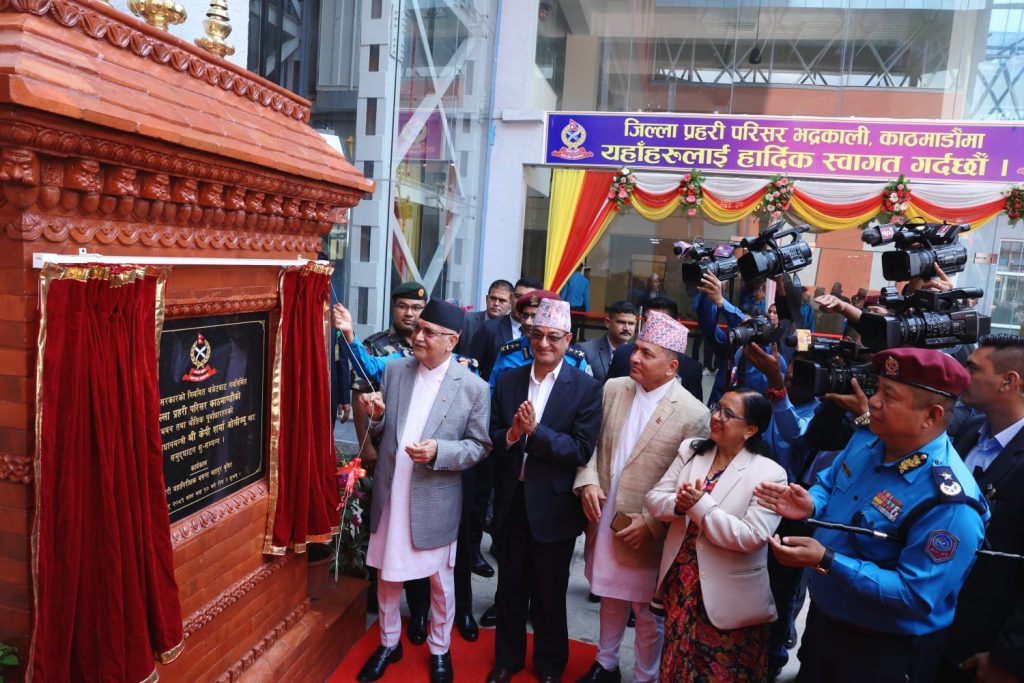 काठमाडौं । प्रधानमन्त्री केपी शर्मा ओलीले नवनिर्मित प्रहरी कार्यालयको भवन उद्घाटन गरेका छन् । सोमबार जिल्ला प्रहरी परिसर काठमाडौंको नवनिर्मित भवन उद्घाटन गर्दै उनले उक्त भवन तथा कार्यालय कक्षहरुको निरीक्षण समेत गरे ।