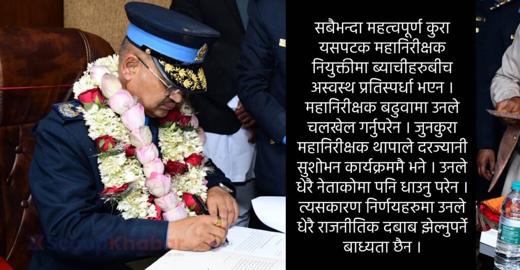 सबैभन्दा महत्वपूर्ण कुरा यसपटक महानिरीक्षक नियुक्तीमा ब्याचीहरुबीच अस्वस्थ प्रतिस्पर्धा भएन । महानिरीक्षक बढुवामा उनले चलखेल गर्नुपरेन । जुनकुरा महानिरीक्षक थापाले दरज्यानी सुशोभन कार्यक्रममै भने । उनले धेरै नेताकोमा पनि धाउनु परेन ।