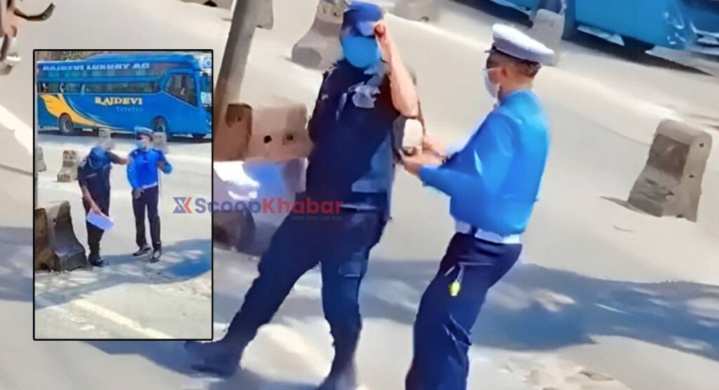 ट्राफिक इन्स्पेक्टरले प्रहरी जवानलाई सडकमै कुटे