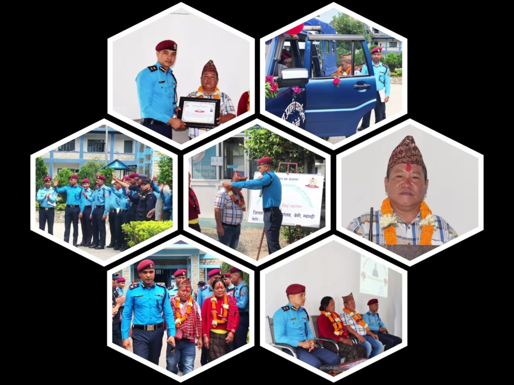 काठमाडौं । जिल्ला प्रहरी कार्यालय म्याग्दीले अवकाशमा गएका एकजना प्रहरी कार्यालय सहयोगीको भव्य विदाइ गरेको छ । सेवा निवृत्त भएका प्रहरी कार्यालय सहयोगी ओम बहादुर आलेको विदाइ गरिएको हो ।
