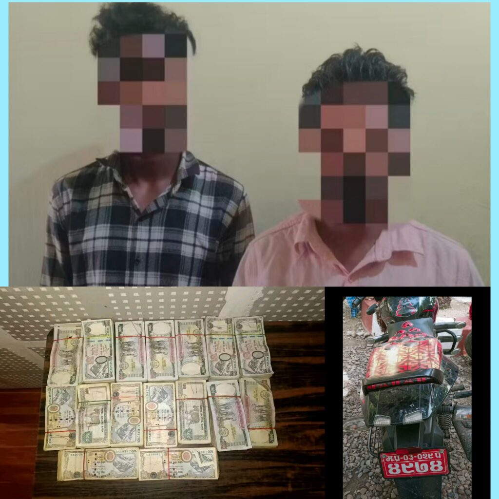 विशेष सूचनाका आधारमा वीरगन्ज महानगरपालिका वडा नम्वर २१ स्थित रहेको परवानीपुर प्रहरीको टोलीले उक्त रकम सहित उनिहरुलाई नियन्त्रणमा लिएको हो ।पक्राउ पर्नेमा सवार पर्सा जिल्ला पकाहामैनपुर गाउँपालिका–२ बस्ने २५ वर्षीय सुरेश कुमार बर्णवाल र भारत बिहार राज्यको बेतिया बकुलहर बस्ने १९ वर्षीय सत्यम कुमार रहेको प्रहरीले जनाएको छ।