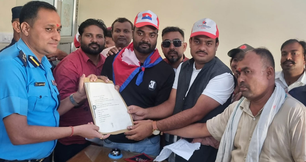 संघका अध्यक्ष सद्वाम अन्सारीको नेतृत्वमा पुगेको टोलीले जिल्ला प्रहरी कार्यालय बाराका निमित्त प्रमुख प्रहरी नायव उपरीक्षक (डीएसपी) बिजयराज पण्डितलाई जाहेरी पत्र बुझाएको हो ।