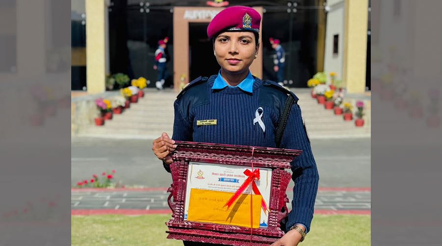 आज आयोजित कार्यक्रमबीच प्रहरी महानिरीक्षक दानबहादुर कार्कीले प्रथम स्थान हासिल गरेकोमा नगद ४० हजार रुपैयाँसहित प्रशंसा–पत्र प्रदान गरे ।