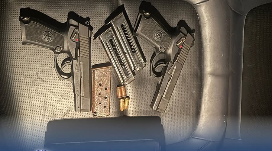 प्रहरीले उनीहरूको साथबाट CF 98-900003308237 र CF 98-900011108236 नम्बरका दुईवटा पेस्तोल, तीनवटा म्यागजिन, दुई राउन्ड गोली र दुईवटा गोलीको खोका बरामद गरेको छ ।