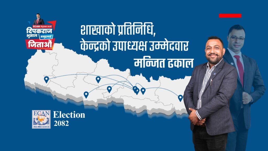 काठमाडौं । नेपाल शैक्षिक परामर्श संघ (ECAN) को आगामी 2082 को केन्द्रीय निर्वाचनमा, मञ्जित ढकालले दीपक राज भुषाल समूहबाट केन्द्रीय उपाध्यक्ष पदमा उम्मेदवारी घोषणा गरेका छन्। वर्तमानमा उनी ECAN को केन्द्रीय समितिमा सदस्यको रूपमा सक्रिय छन् र Branch Coordination Department मार्फत केन्द्र र शाखाबीच प्रभावकारी समन्वयमा निरन्तर योगदान गर्दै आएका छन्।