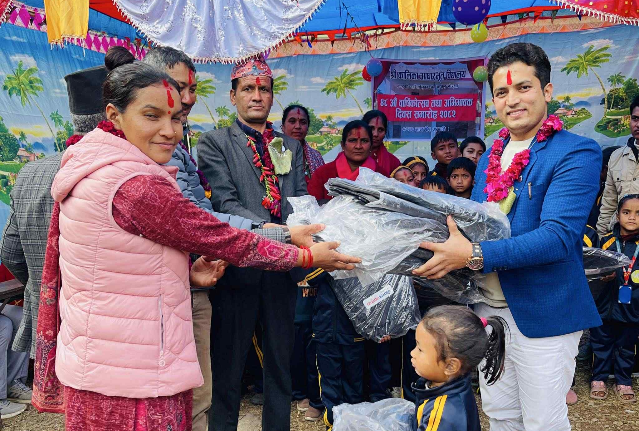 कम्पनीले उक्त विद्यालयको ४८ औं बार्सिक उत्सव तथा अभिभावक दिवसको समारोहमा विद्यार्थीहरुलाई ४५ थान विद्यालय झोला र २७० थान कपी वितरण गरेको हो। सहयोग सामग्री वितरण कार्यक्रम अरुणखोला उप–शाखाका प्रमुख दीपक पन्तको उपस्थितिमा सम्पन्न भएको थियो।
