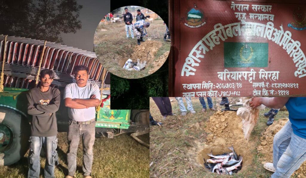 यसैगरी, बिहीबार सशस्त्र प्रहरीले प्रतिबन्धित करिब १०० केजी माछा र स्थानीय रूपमा उत्पादन गरिएको २० लिटर घरेलु मदिरा नष्ट गरेको छ।