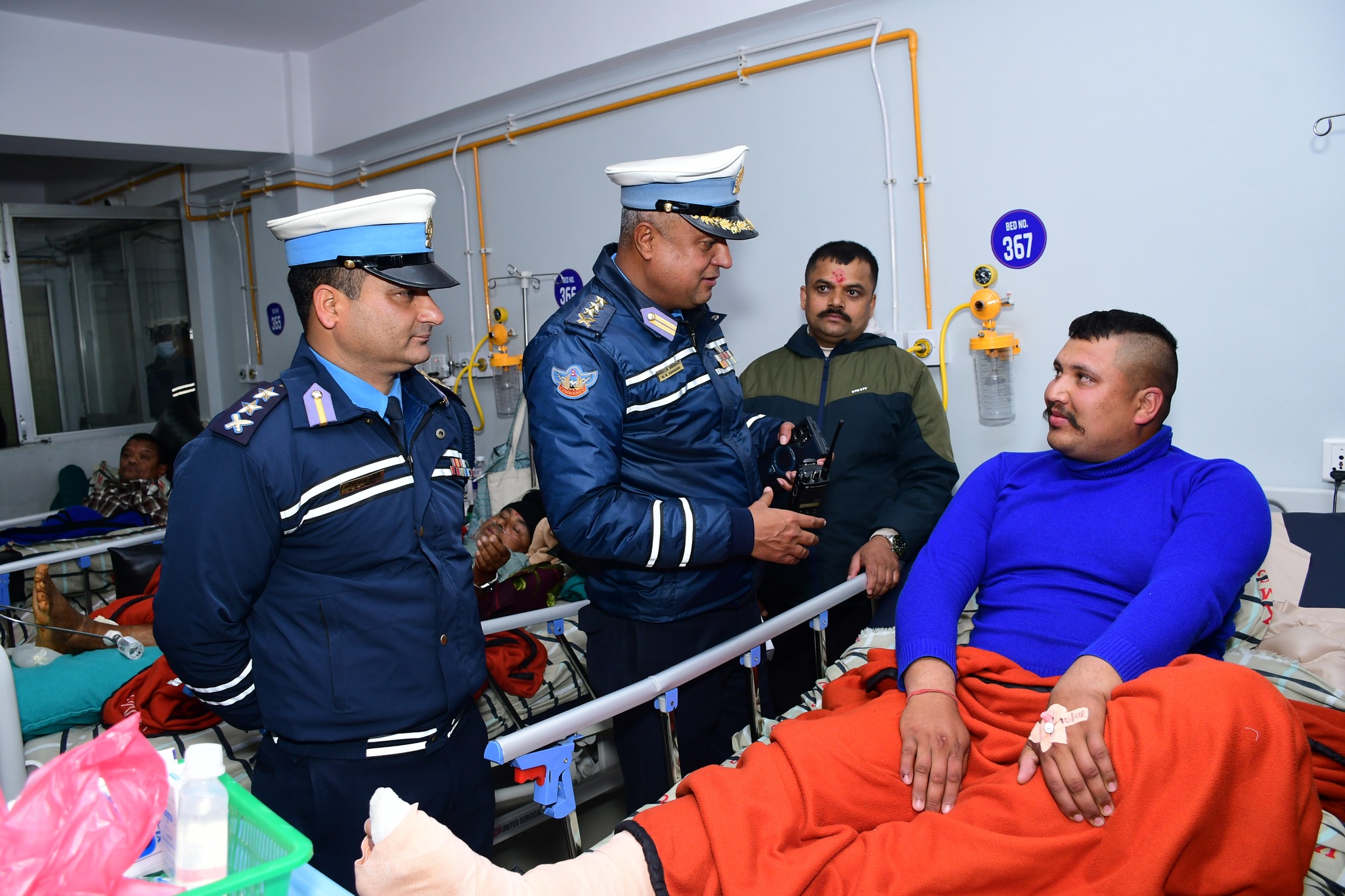 काठमाडौं उपत्यकामा दुर्घटनामा परेर घाइते भएका २४ जना अहिले काठमाडौंका विभिन्न अस्पतालमा उपचाररत छन् । दुर्घटनामा परेर घाइते भएकाहरूको अवस्था दर्दनाक रहेको उपत्यका ट्राफिक प्रहरी कार्यालयका एसएसपी अधिकारीले बताए । ट्राफिक सप्ताह मनाउने क्रममा घाइतेहरूसँग भेट्न अस्पताल पुगेका अधिकारीले भने, ‘दुर्घटना गराउने र दुर्घटनामा पर्ने दुवैको आर्थिक अवस्था कमजोर हुँदा उपचारमा ठुलो समस्या देखिन्छ ।’