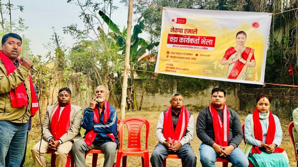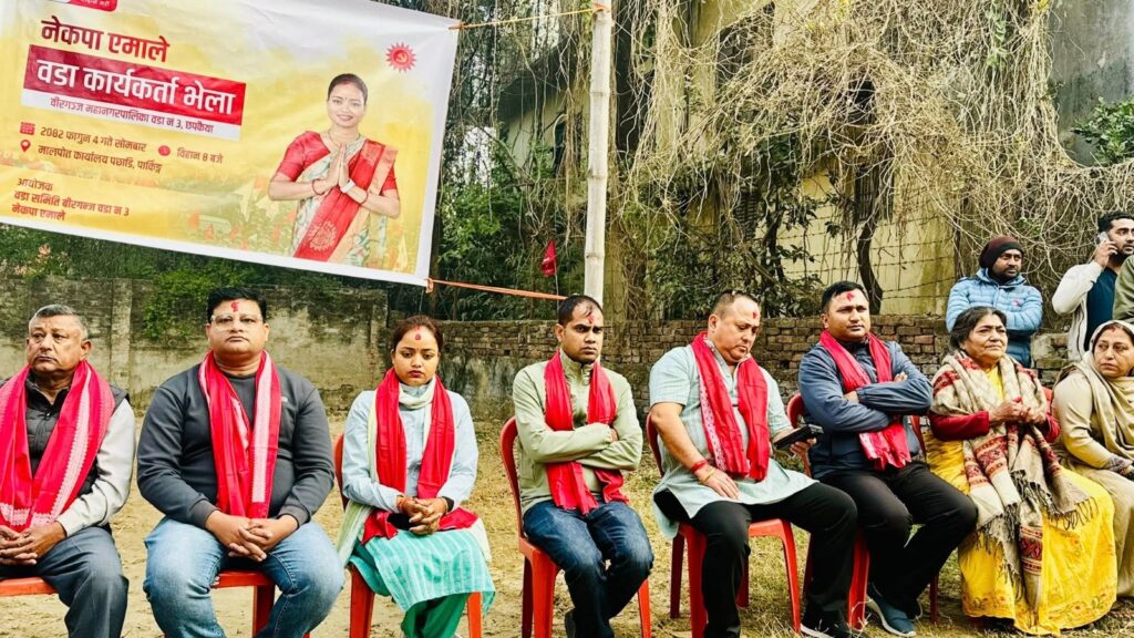 सोमबार,।नेकपा एमालेले वीरगंज महानगरपालिका वडा नम्बर–३ को चुनावी वडा भेला सोमबार सम्पन्न भएको छ। वडा कमिटीका उपाध्यक्ष प्रकाश नेपालको अध्यक्षतामा सम्पन्न भेलामा सहभागीहरूले फागुन २१ गते हुने निर्वाचनमा पार्टीका उम्मेदवारलाई विजयी गराउन एकजुट भएर लाग्ने प्रतिबद्धता जनाएका छन्।