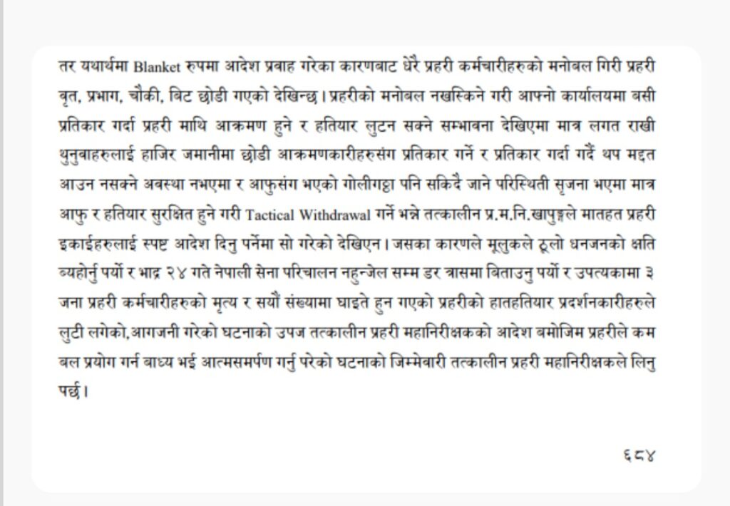 आयोगको निष्कर्षले आन्दोलनका क्रममा भएको क्षतिको जिम्मेवारी नेतृत्व तहसम्म पुग्ने संकेत गरेको छ भने यस प्रकरणले सुरक्षा निकायभित्रको निर्णय प्रक्रियामाथि समेत प्रश्न उठाएको छ।