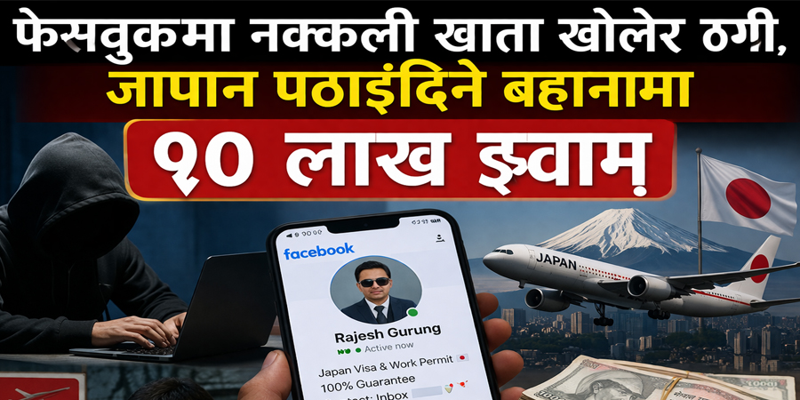उनले भने, ‘फेसबुकमा नक्कली खाता खोली पीडितहरूसँग च्याटमा कुराकानी गरी आकर्षक तलब, सुविधामा जापान पठाइदिने भनी चारजना पीडितहरूलाई व्यक्तिगत कागजातसमेत पठाउन लगाई, विभिन्न बैंक खातामा पटकपटक गरी ९० लाख जम्मा गर्न लगाई ठगी गरेको पाइयो ।’