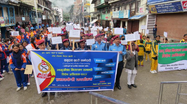 समुदाय(प्रहरी साझेदारी कार्यक्रम अन्तर्गत जिल्ला प्रहरी कार्यालय जुम्लाको आयोजना तथा विभिन्न संघ संस्थाको सहयोगमा उक्त अभियानको सुरुवात भएको हो ।