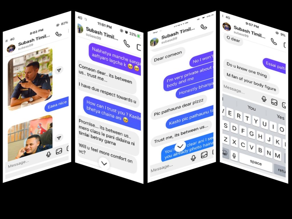 सामाजिक सञ्जालमा इन्स्पेक्टरको यो संवाद अहिले ‘भाइरल’भएको छ । तिमिल्सिनाले आपत्तिजनक म्यासेज पठाएको भन्दै कास्की प्रहरीले छानबिन अघि बढाएको छ ।