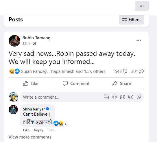 रबिनकै फेसबुकबाट उनको निधन भएको खबर सार्वजनिक भएको हो । फेसबुकमा भनिएको छ, ‘अत्यन्तै दुखद खबर । रबिनको आज निधन भएको छ । हामी तपाईलाई जानकारी राख्नेछौं ।’