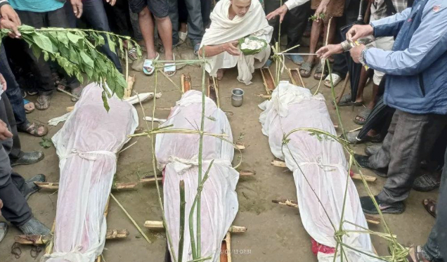 टुनिबोट टोलका ४८ वर्षिय देव बहादुर ओली, उहाँकी ५० वर्षिया श्रीमती भिमा ओली र १७ वर्षिय कान्छो छोरा मोहन ओलीको आज अन्त्येष्टि गरिएको हो ।