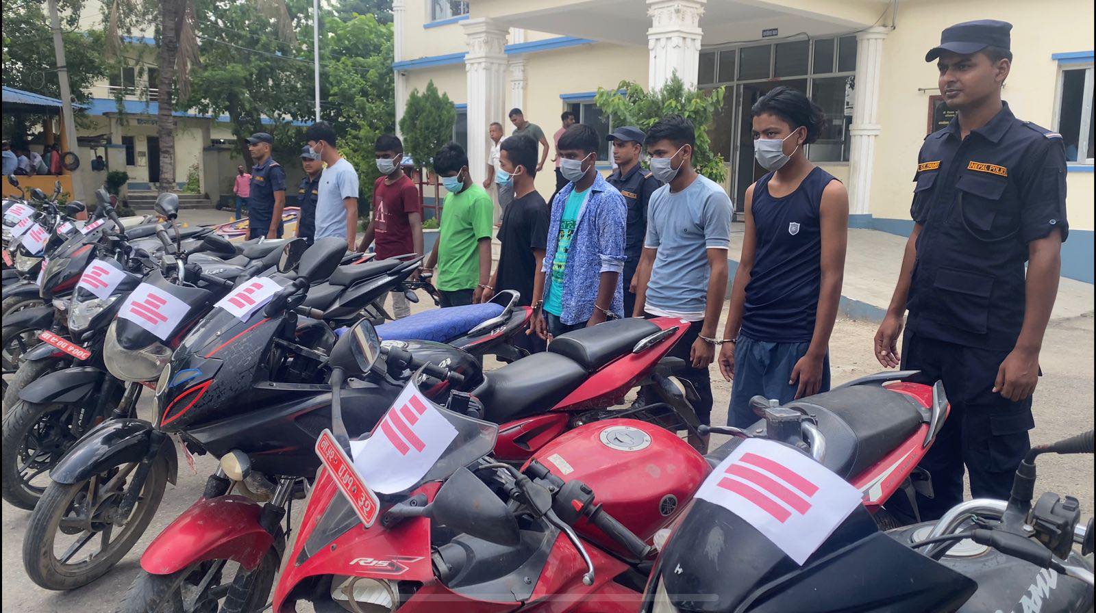 ‘विभिन्न मितिमा जिललाको विभिन्न स्थानहरुबाट चोरी गरेको १२ वटा मोटरसाइकलसहित मोटरसाइकल चोरी गर्ने गिरोह (माथिका व्यक्ति)हरुलाई पक्राउ गर्न सफल भएका हौं,’ एसपी बोगटीले भने, ‘उनीहरुविरुद्ध चोरी तथा डाँका सम्बन्धी मुद्दामा अदालतबाट म्याद थप गरी थप अनुसन्धान भइरहेको छ ।’