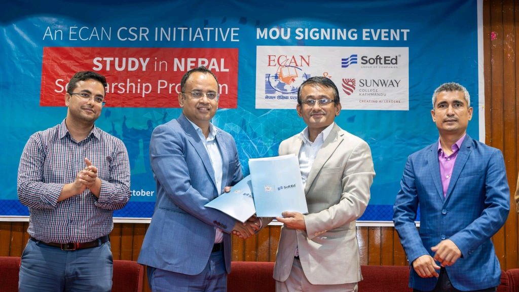 यसका लागि इक्यान र सफ्टेड ग्रुप अन्तर्गतको सनवे कलेजबीच सम्झौता भएको छ । इक्यान अध्यक्ष शेषराज भट्टराई र सफ्टेड ग्रुपका अध्यक्ष विज्ञान श्रेष्ठसहित सफ्टेड ग्रुपका निर्देशक प्रमोद पौडेल, सनवे कलेजका हेड अफ अपरेसन सिमोली गौतम देशइ, इक्यानका महासचिव दीपकराज भुसाल र कार्यसमिति सदस्य उमा खड्काले सम्झौता पत्रमा हस्ताक्षर गरेका हुन् ।