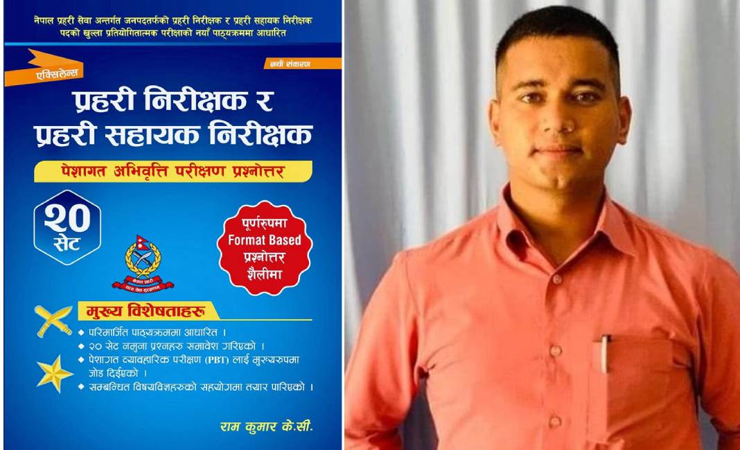काठमाडौं । प्रहरी निरीक्षक (इन्स्पेक्टर) रामकुमार केसीले ‘पेशागत अभिवृत्ति परीक्षण प्रश्नोत्तर’ नामक पुस्तक बजारमा ल्याएका छन् । नेपाल प्रहरीमा भर्ना हुन इच्छुकहरुका लागि उपयुक्त हुने उक्त पुस्तक सेवामा रहेका र नवप्रवेशीले खरिद गरी उपयोग गर्न सक्नेछन् ।