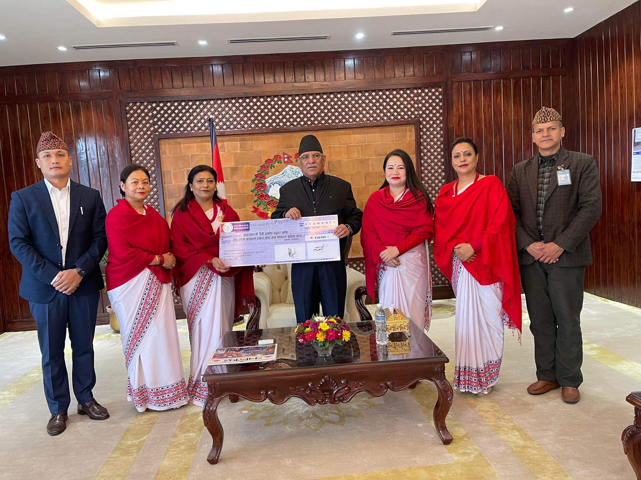 सोमबार संघकी केन्द्रीय अध्यक्ष श्रीमती लक्ष्मी कुँवरलगायत संघका पदाधिकारीको उपस्थितिमा प्रधानमन्त्री पुष्पकमल दाहाल प्रचण्डलाई सो रकम बराबरको चेक हस्तान्तरण गरिएको हो ।