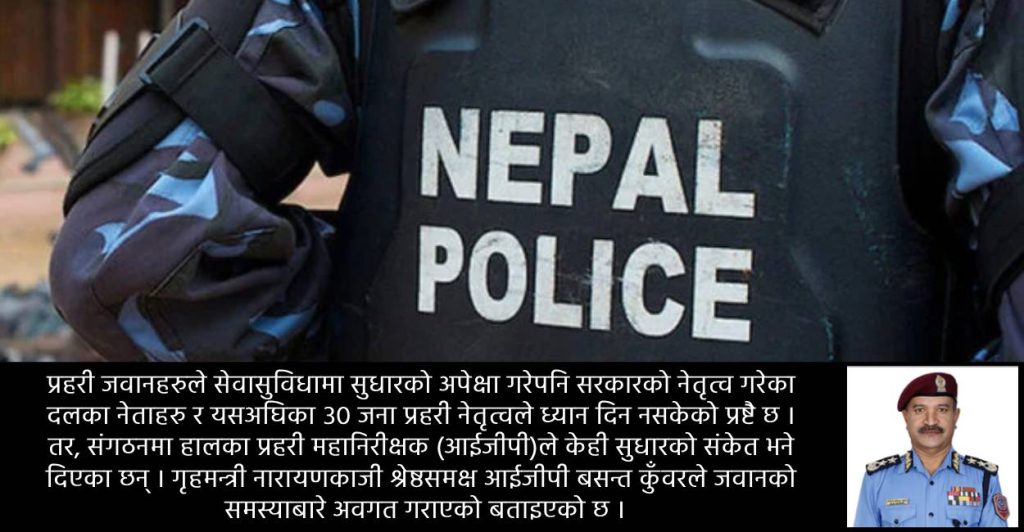 प्रहरी जवानहरुले सेवासुविधामा सुधारको अपेक्षा गरेपनि सरकारको नेतृत्व गरेका दलका नेताहरु र यसअघिका ३० जना प्रहरी नेतृत्वले ध्यान दिन नसकेको प्रष्टै छ । तर, संगठनमा हालका नेतृत्वले केही सुधारको संकेत भने दिएका छन् ।