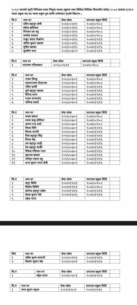 त्यसैगरी दोस्रो नम्बरमा ढकेन्द्र खतिवडा, निरन्जनदत्त भट्ट, सन्तोष तामाङ, ठाकुरप्रसाद पोखरेल, अनिलकुमार खड्का, सुमित खड्का, विनोद घिमिरे र कुलदिप चन्द रहेका छन् ।