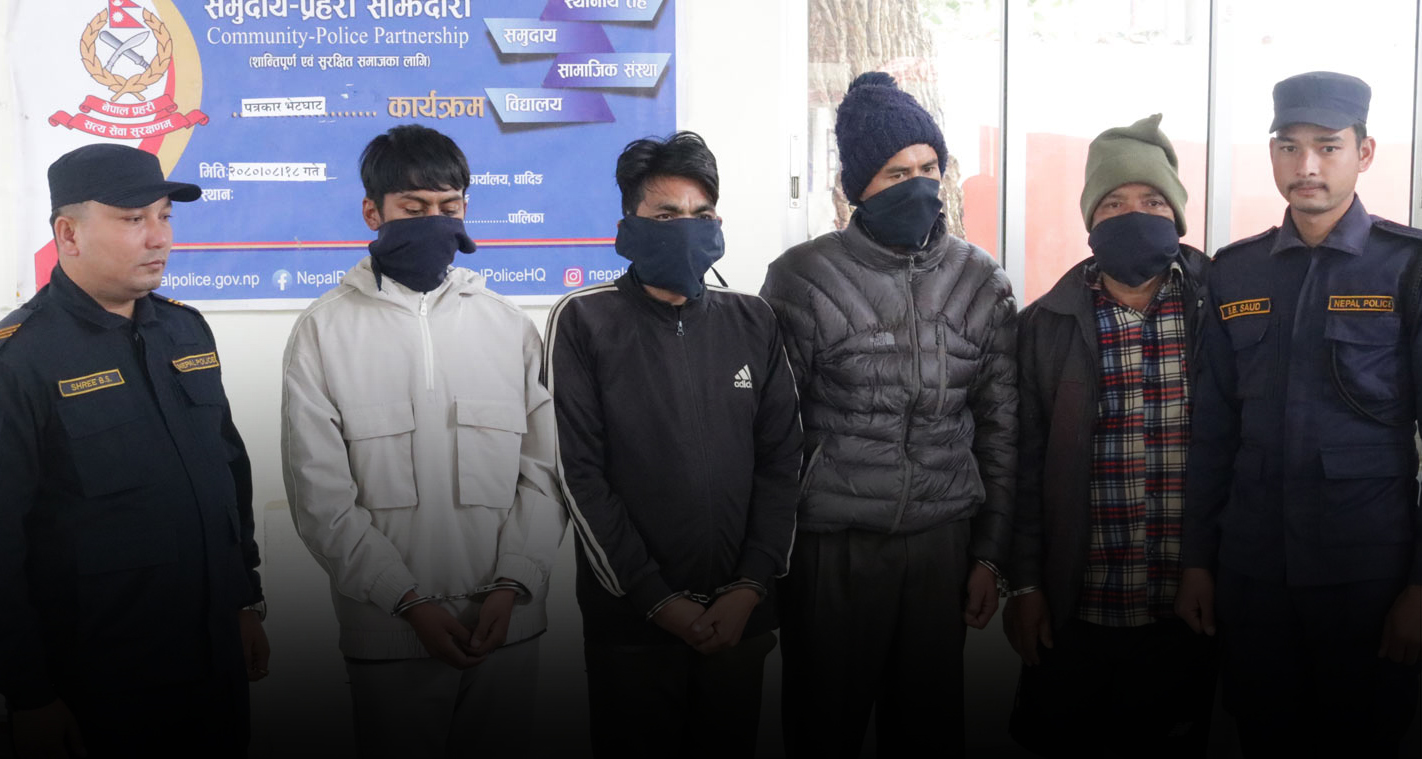 काठमाडौं । धादिङ प्रहरीले हत्यामा संलग्न रहेका चारजना फरार प्रतिवादीलाई पक्राउ गरी सार्वजनिक गरेको छ । फरक–फरक २ घटनामा संलग्न रहेका चार जनालाई पक्राउ गरी सोमबार सार्वजनिक गरेको हो ।