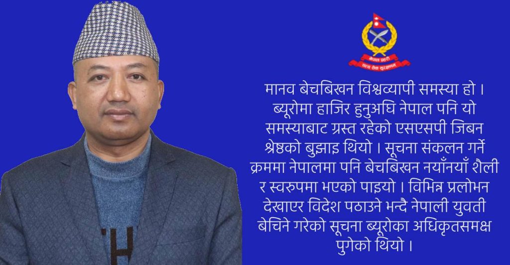 मानव बेचबिखन विश्वव्यापी समस्या हो । ब्यूरोमा हाजिर हुनुअघि नेपाल पनि यो समस्याबाट ग्रस्त रहेको एसएसपी श्रेष्ठको बुझाइ थियो । सूचना संकलन गर्ने क्रममा नेपालमा पनि बेचबिखन नयाँनयाँ शैली र स्वरुपमा भएको पाइयो ।